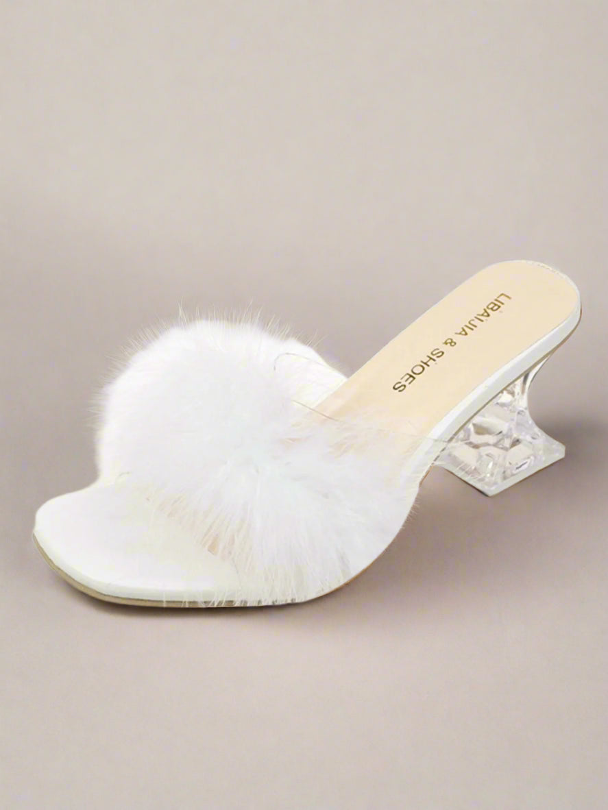 Fluffy Strap Block Heel Sandals