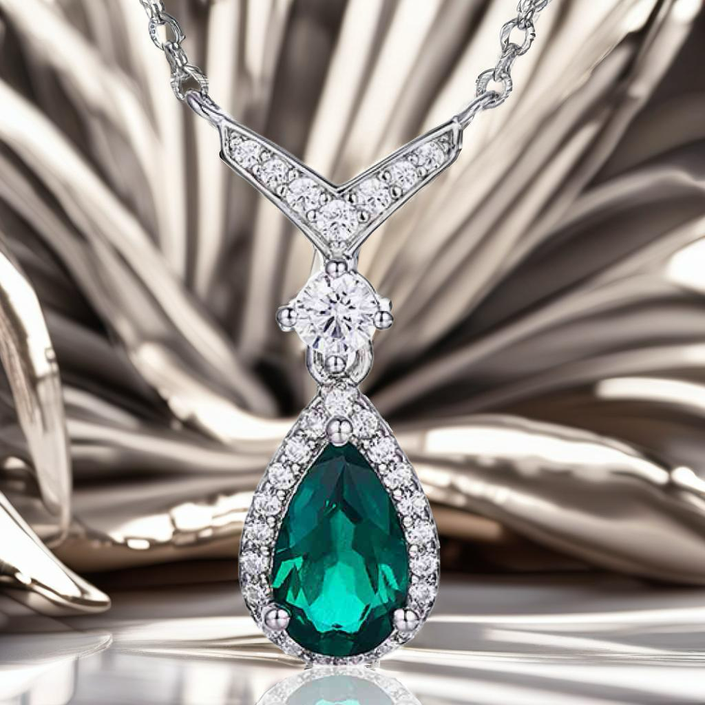 Experience elegance with every wear. Our teardrop necklace, handcrafted with 925 sterling silver and platinum plating, showcases a beautiful lab-grown emerald and sparkling zircon that capture the light with every move. This timeless piece comes with a matching box for safekeeping and boasts a 15.7 inch chain with a 2 inch extension, making it the perfect fit for any neckline. Keep your necklace looking exquisite by avoiding exposure to sweat during exercise, which can cause silver chloride and copper sulfide to form, ultimately damaging and corroding your jewelry over time. With a main stone of 0.73 carats, this necklace adds a touch of luxury to any outfit.