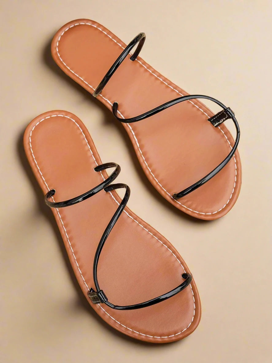 Strappy Leather Flat Sandals offer a blend of refined elegance and everyday comfort. Crafted from high-quality vegan leather, PVC, and durable rubber, these flats maintain a sophisticated look while prioritizing ethical materials. Designed to fit true to size, simply order your usual size for a perfect fit. The absence of a heel ensures ease of movement and all-day wearability, making these sandals ideal for both casual outings and polished ensembles. Please note, sandals are shipped without a box. Detailed product measurements and size conversion information are provided to help you choose your ideal fit with confidence.